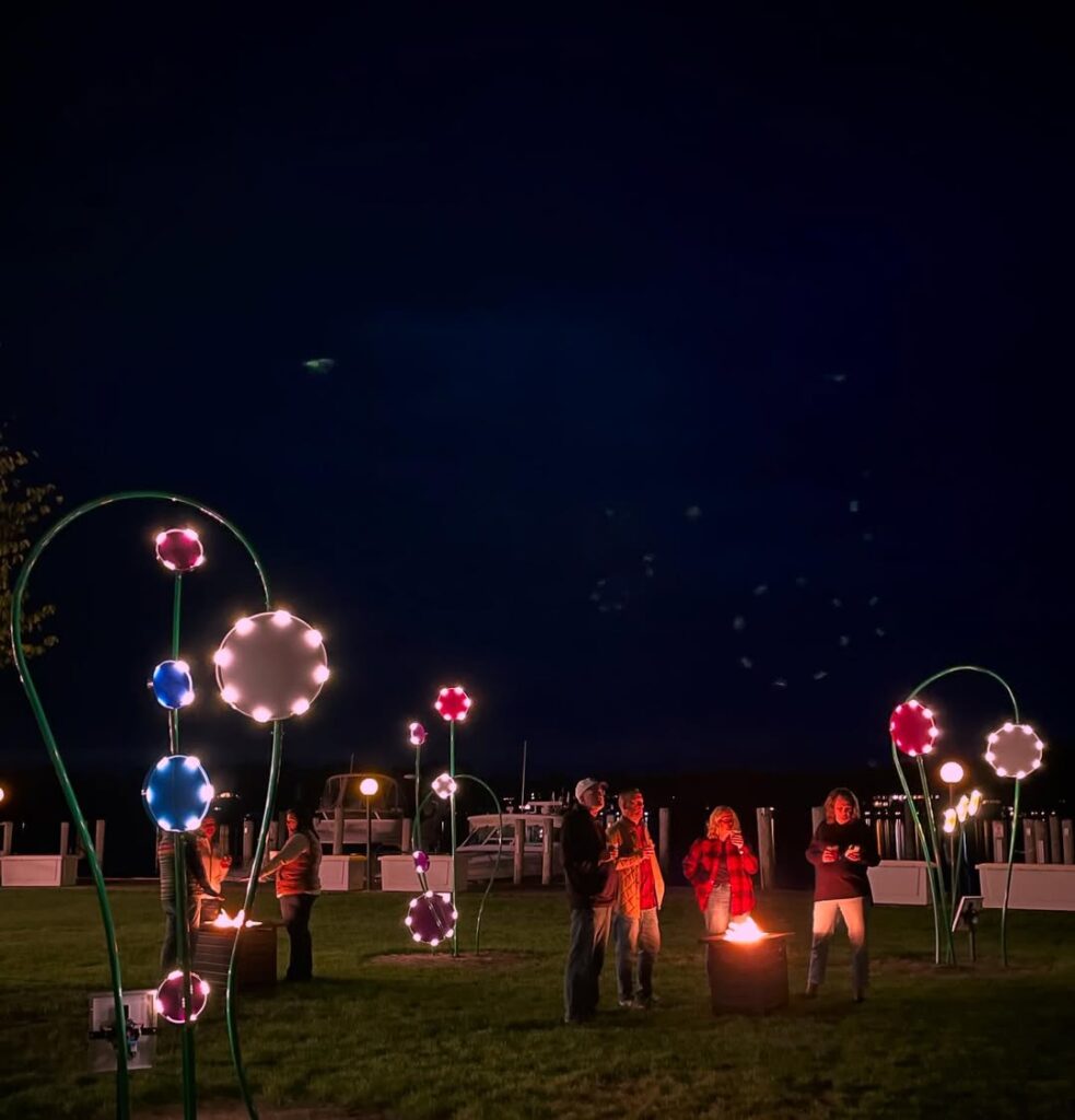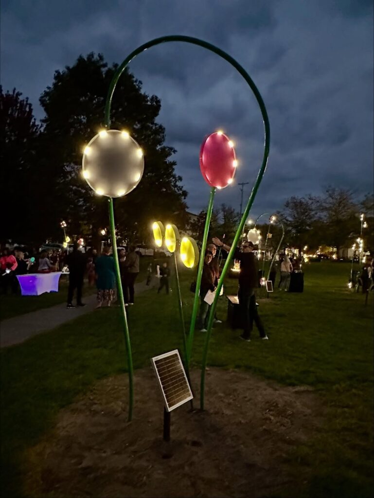 For decades, Cook Park’s gentle willow once offered shade and stillness—a natural gathering spot for anyone seeking a moment of peace. Its removal left an empty space that the community immediately felt. Flower World now brightens that very space, surrounding visitors with whimsical floral sculptures that transform the park into a dreamlike landscape that can be explored day or night.