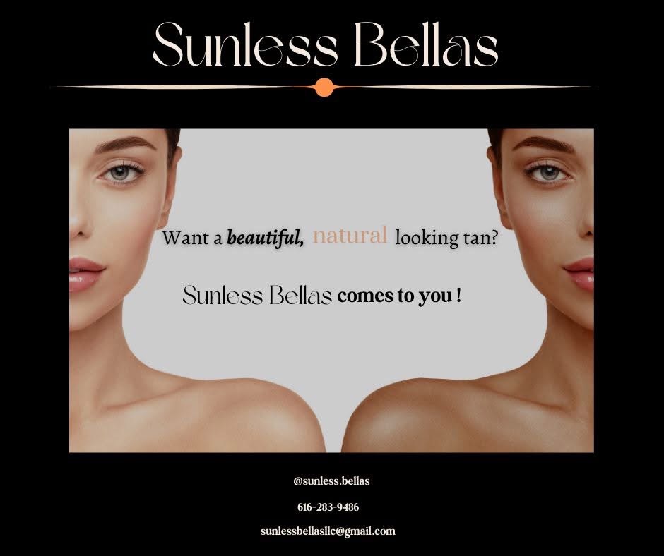 Bringing professional, salon-quality spray tans directly to you. With three years’ experience and portable, high-end equipment, Sunless Bellas delivers flawless, natural-looking results using all-natural solutions tailored to your skin tone. Ideal for bridal parties, bachelorettes, senior portraits, proms, homecoming, graduations, and any special occasion where you want a confident, camera-ready glow. Website and online booking coming soon — contact by phone or text 616-283-9486 also by email – Sunlessbellasllc@gmail.com.
