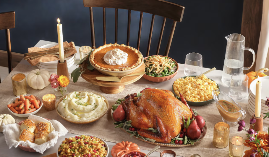 Cajun crab cakes, sauteed brussels sprouts, remoulade sauce sweet potato and roasted corn chowder, applewood smoked bacon, crème fraiche, cranberry pumpkin spice bread, seasonal greens, roasted butternut squash, dried cranberries, sweet spiced nuts, warm cider vinaigrette, herb roasted turkey, brown sugar and clove baked local ham, apple and sage cornbread stuffing, cranberry ginger compote, classic mashed potatoes, haricot vert, fried leeks, dessert trio: caramel pumpkin pie, old fashioned warm apple crisp with cinnamon whipped cream, chocolate truffle tart with bourbon custard sauce.