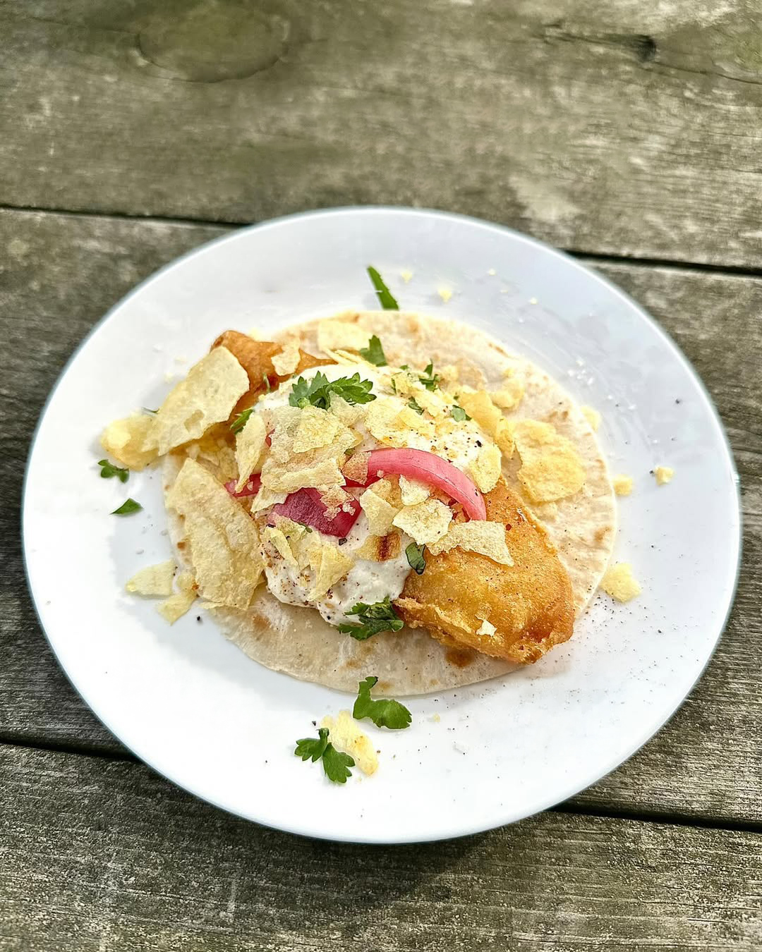 If you’re in the mood for something grilled (not fried), Wicks Park hits the spot. Their blackened fish tacos are hearty and flavorful, layered with black beans, melted Monterey Jack, cabbage, pico de gallo, and a drizzle of ranch on a warm flour tortilla. Bold and satisfying, it’s a must-try for any fish taco fan.