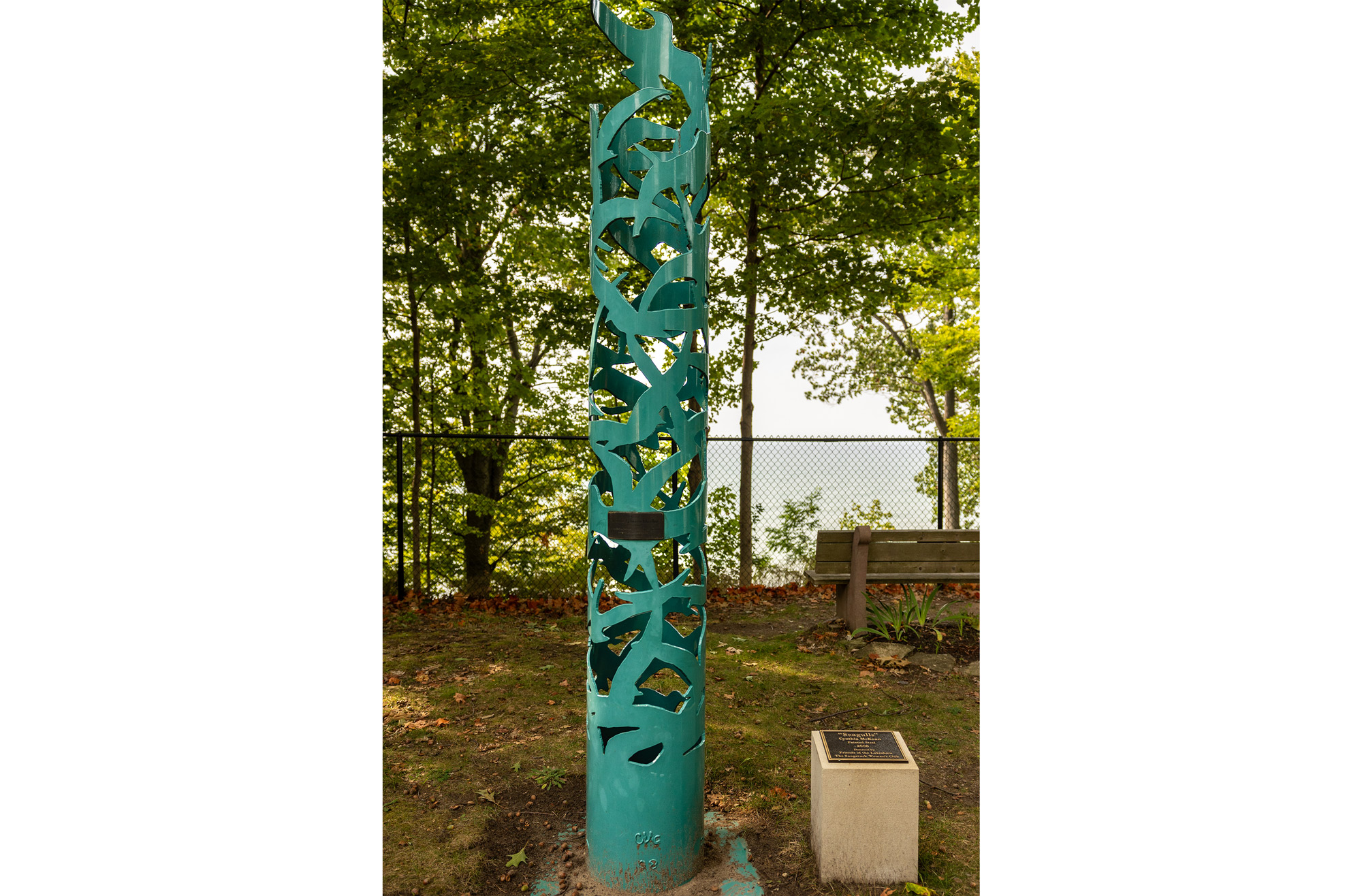 The lower part is a pole, solid and strong to support what rises above and encircles the column. Some of the abstract forms are open or “negative” shapes—spaces cut through the metal.