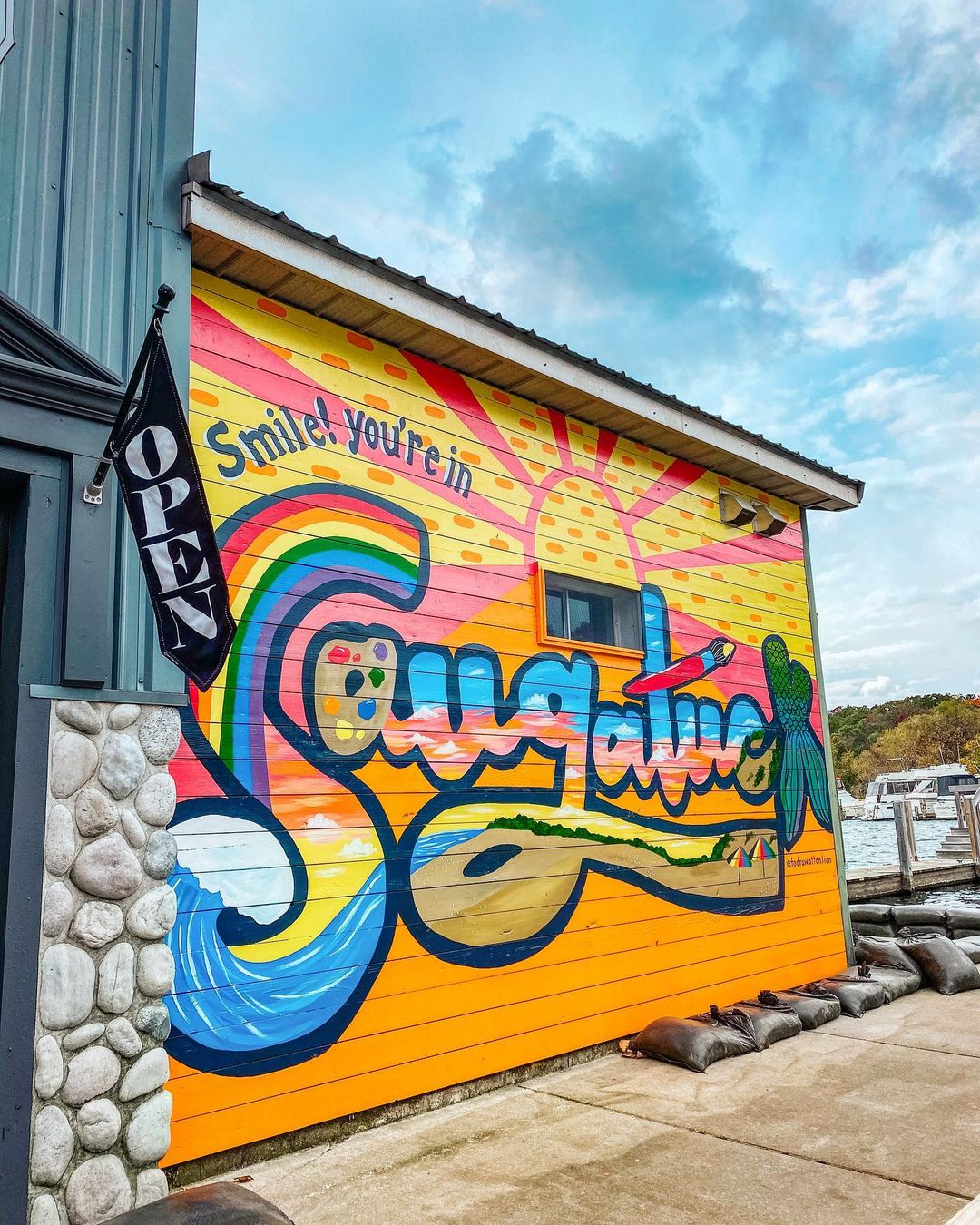 Painted in 2020, this vibrant mural makes the perfect colorful backdrop for a pic to commemorate your time in the Art Coast. Located along the riverfront on Water Street in downtown Saugatuck, the mural lives on the Dockside Market Place building.