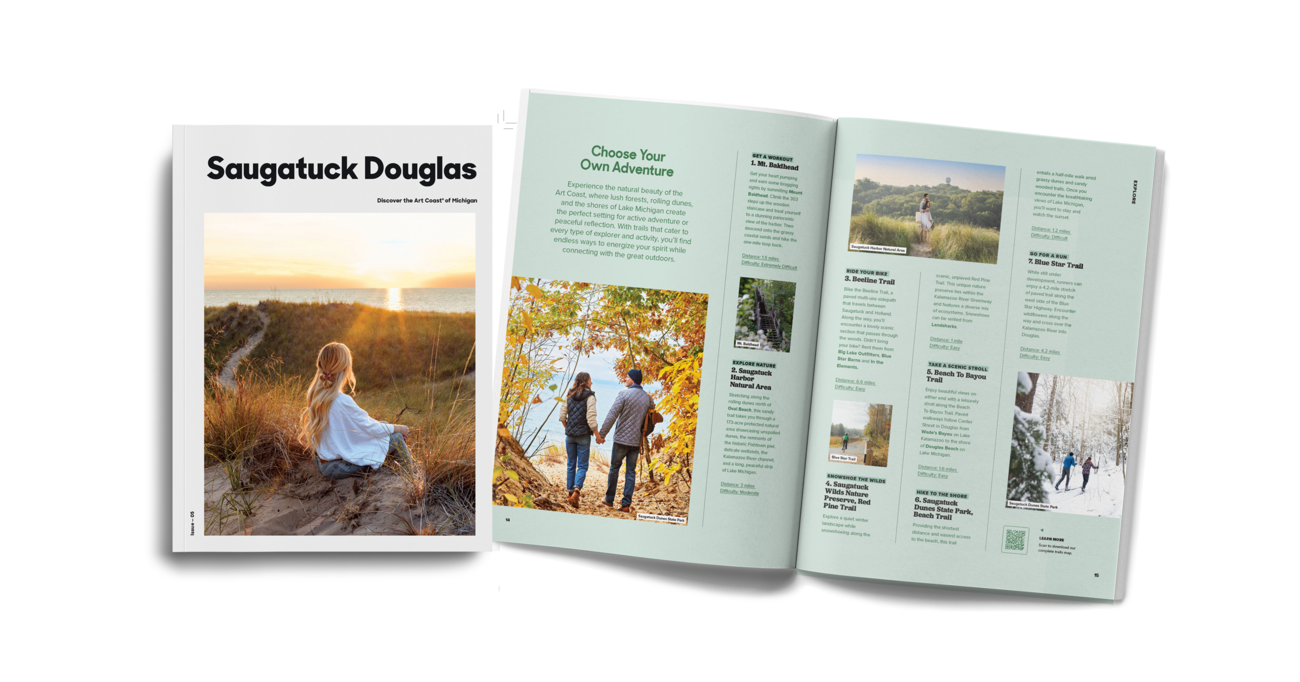 Explore what the Art Coast of Michigan has to offer with a free copy of our Discovery Guide, featuring compelling stories and beautiful photography highlighting all the best things to see/do in Saugatuck/Douglas. Discover why we were voted one of Midwest Living’s Best Midwest Lake Escapes for 2026 and why Lonely Planet and TripAdvisor have named Oval Beach one of their best beaches in the United States.